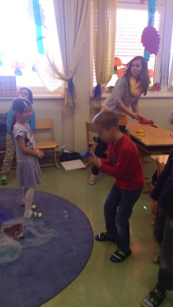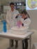 Wir hatten viel Spaß, als wir in der Pause mit der Chirurgenmütze, dem Fieberthermometer und den Arzthandschuhen herumexperimentieren durften. Nicht vergessen: Hygienemaßnahmen treffen mit dem Desinfektionsspray!
