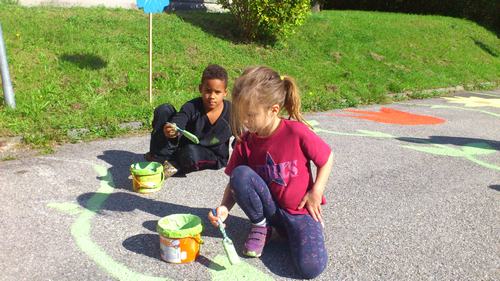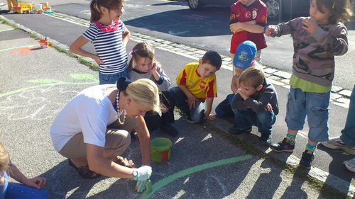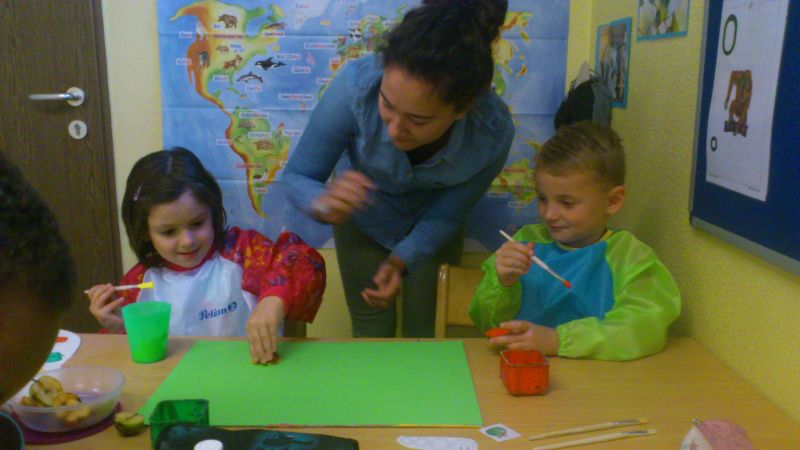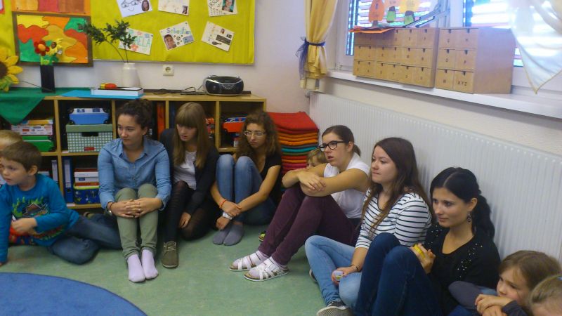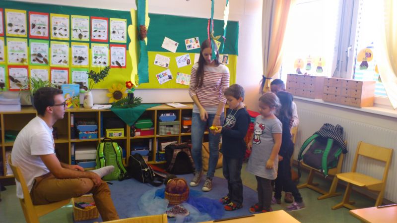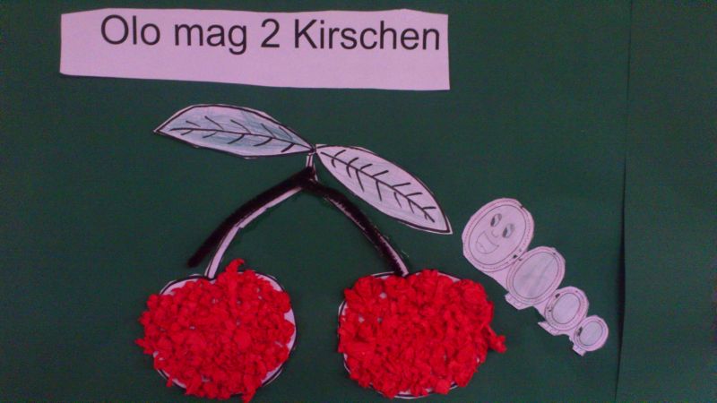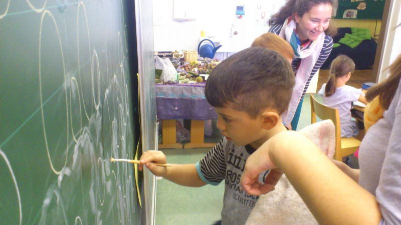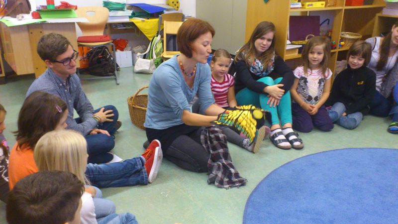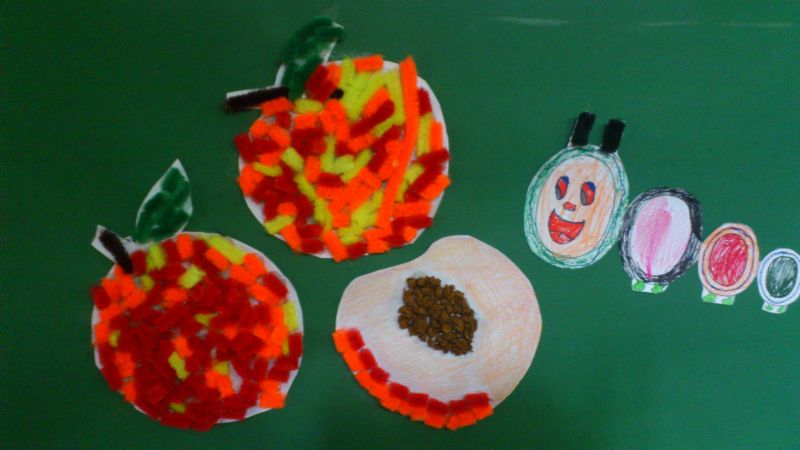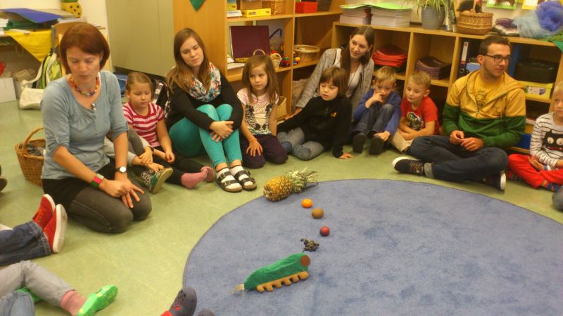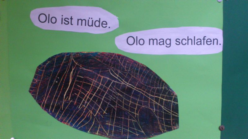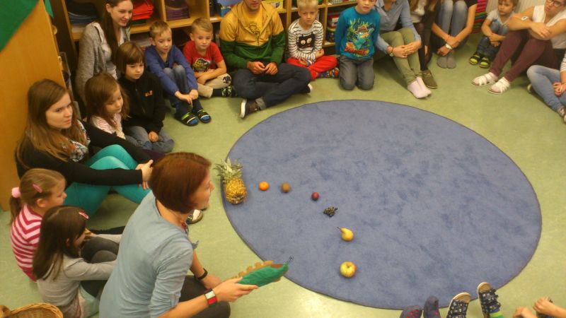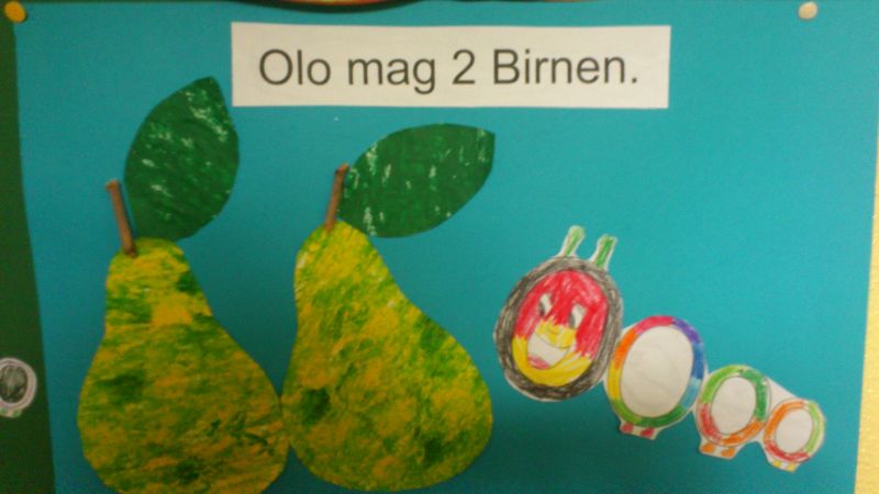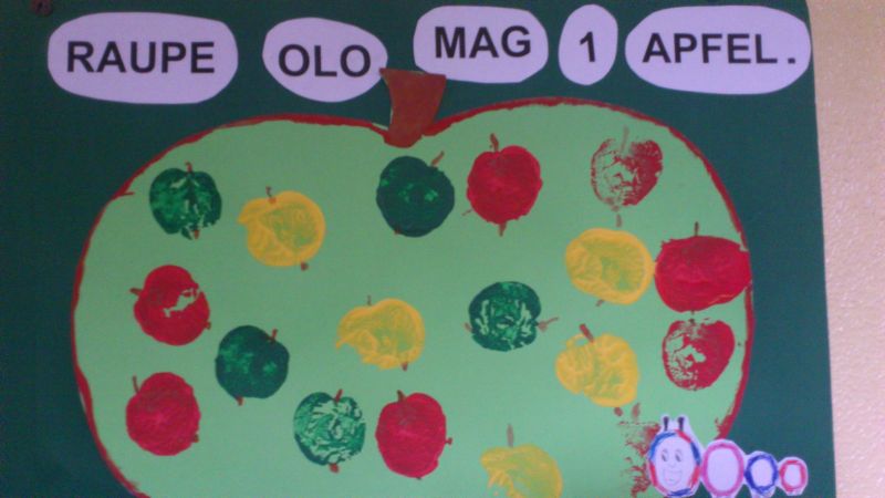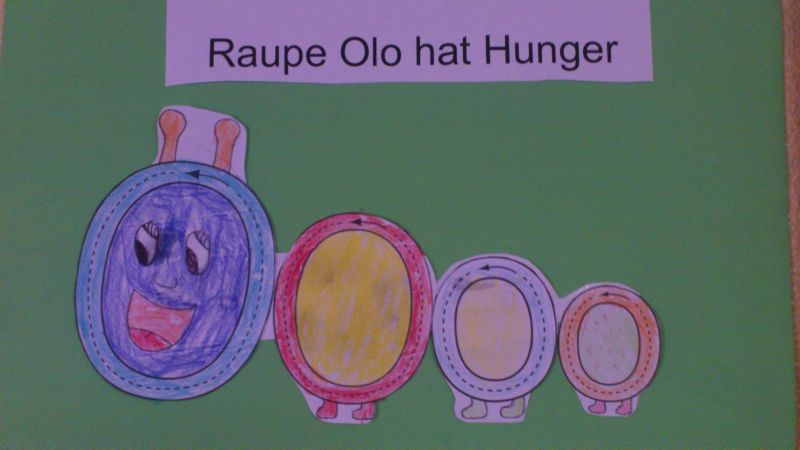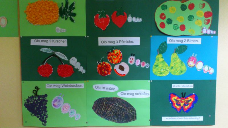 Zur Geschichte „Raupe Olo hat Hunger“ gestalteten die Kinder mit unseren Studierenden des 1. Semesters gemeinsam ein Bilderbuch.
