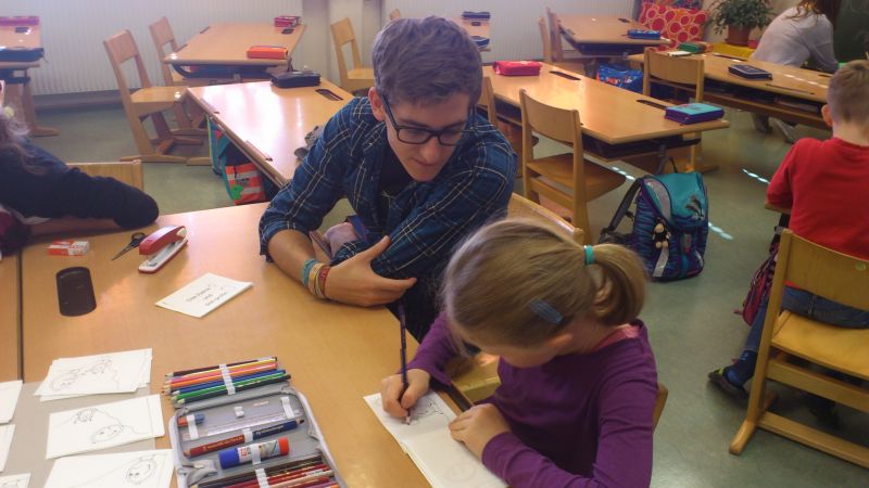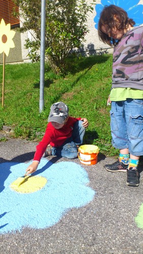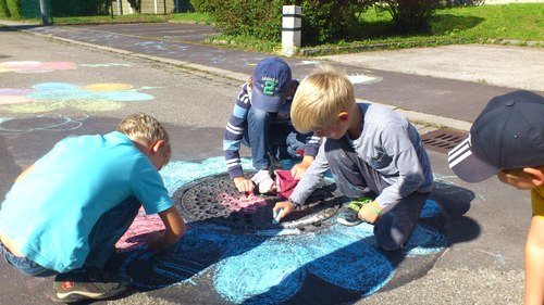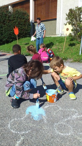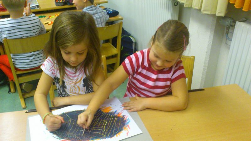 Dabei wurden verschiedene Techniken ausprobiert, das Resultat ist sehr gelungen und kann zur Zeit am Gang vor unserer Klasse bewundert werden.