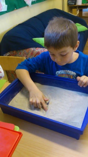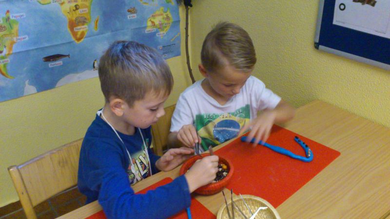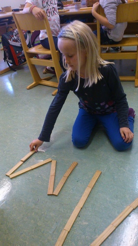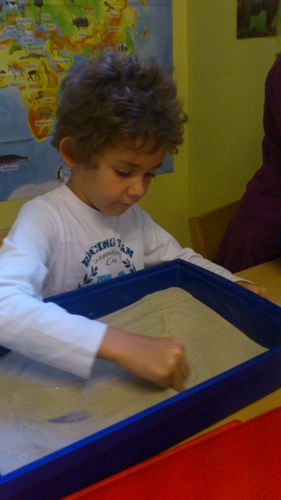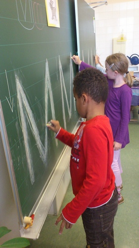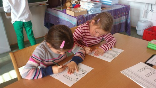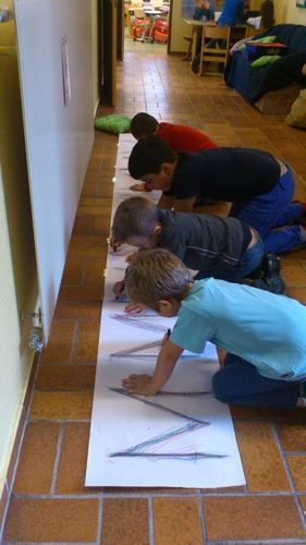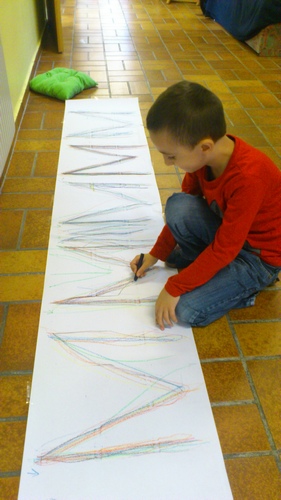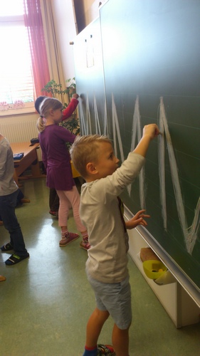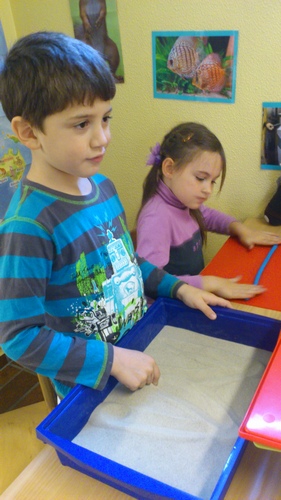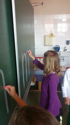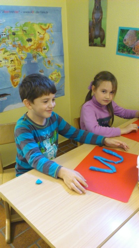 Jeder neu erlernte Buchstabe und jede Ziffer wird im Stationsbetrieb spielerisch erlernt. Dabei achten wir auf unterschiedliche fein- und grobmotorische Übungsformen.