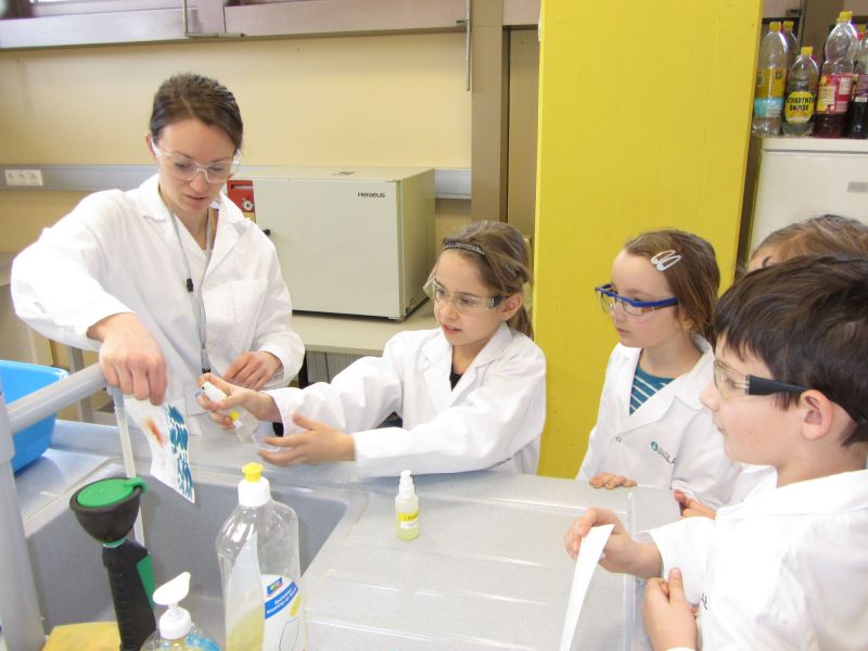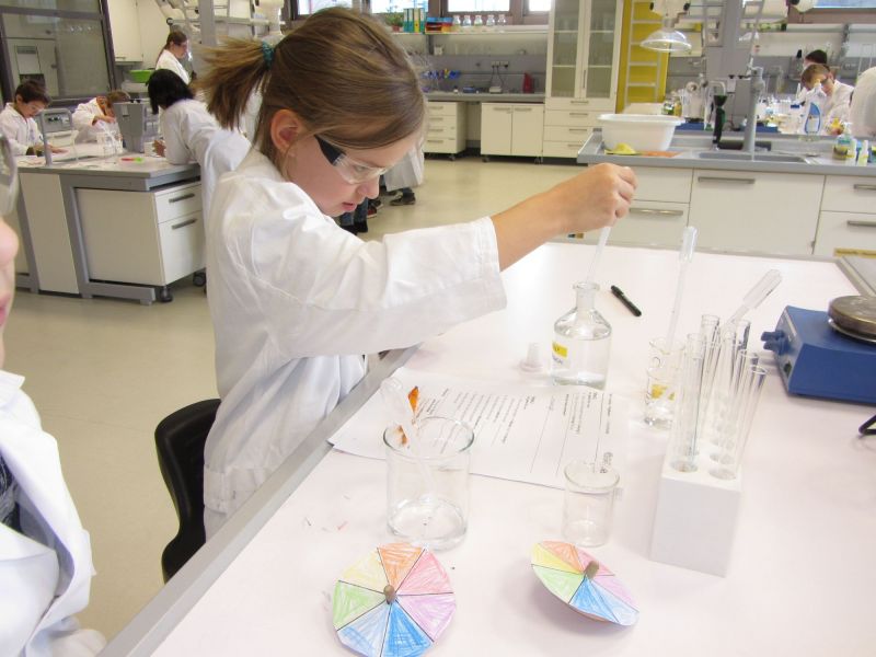 Wir machten einen Lehrausgang ins Labor der Linzer Universität. Dort führten wir zum Thema "Farben" verschiedene Experimente durch.