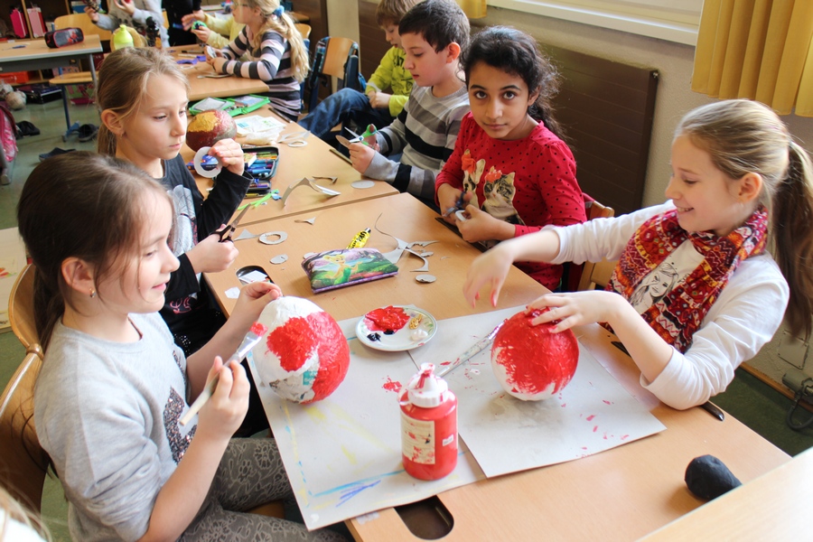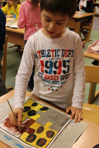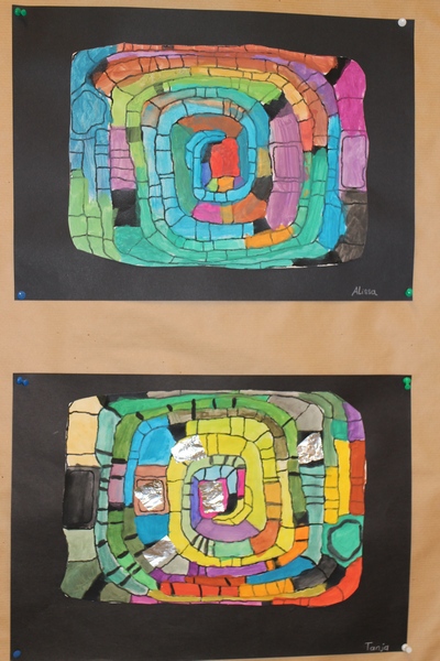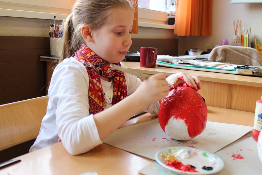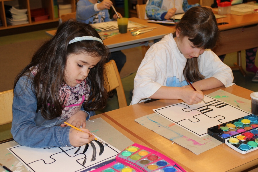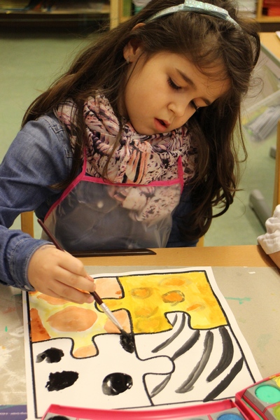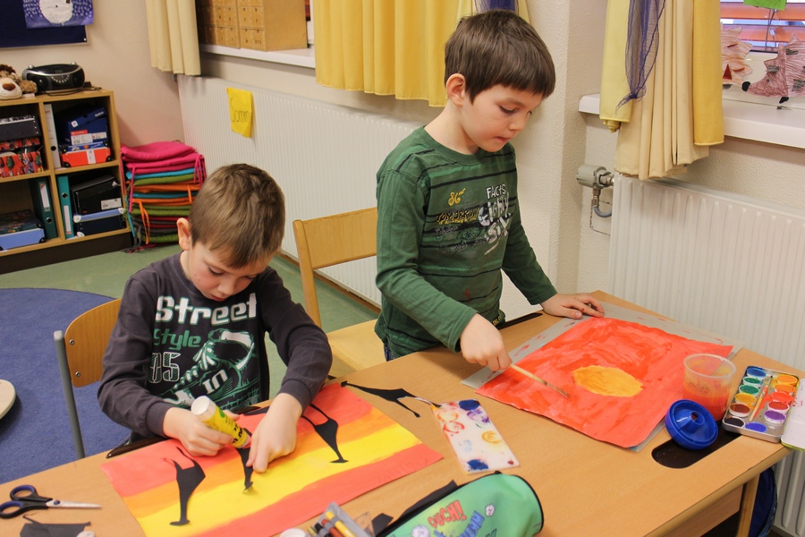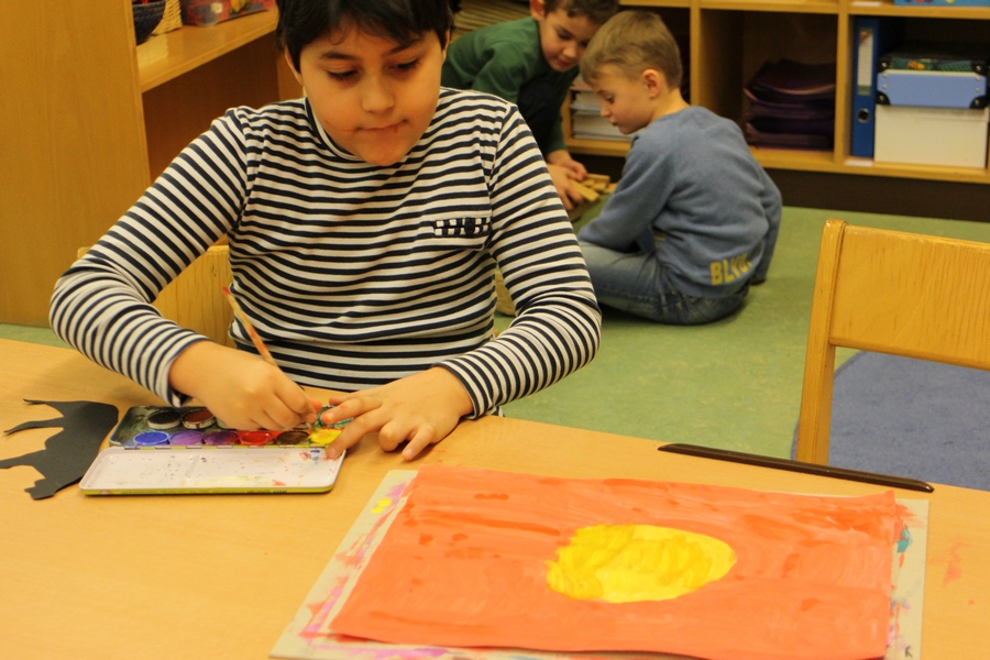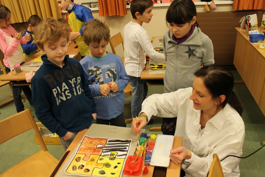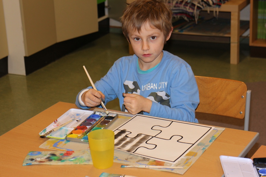 Hier können Sie die Kinder bei der Entstehung der Kunstwerke für die Vernissage beobachten.
