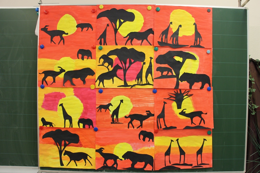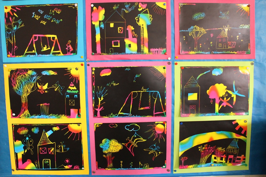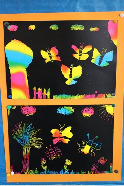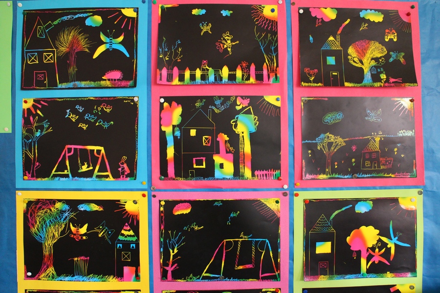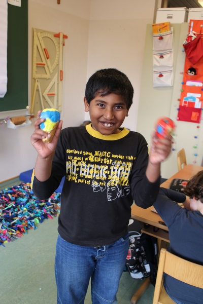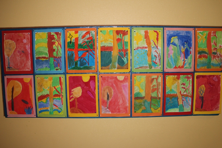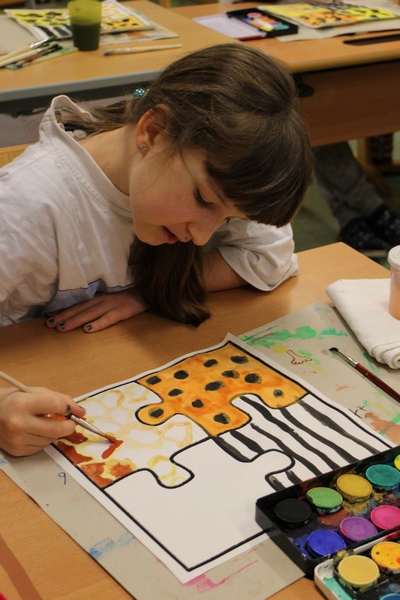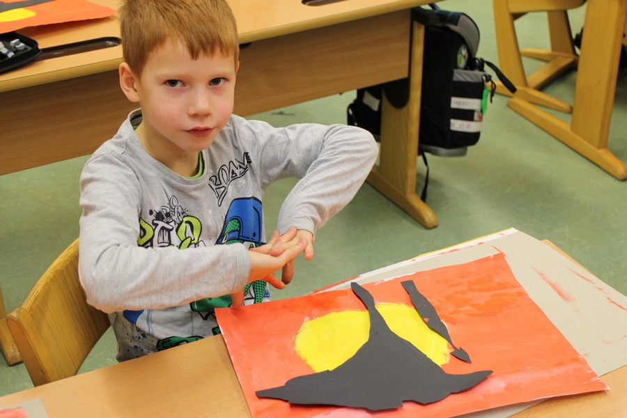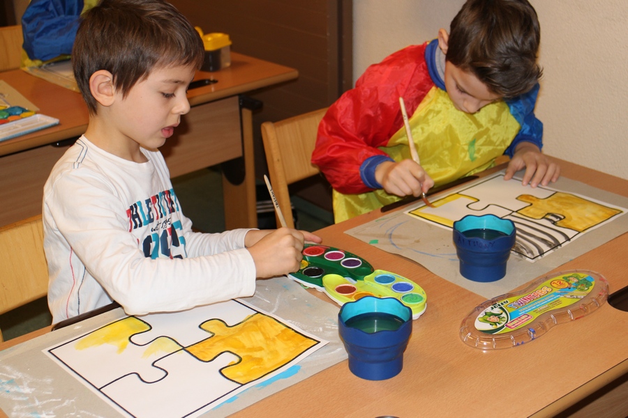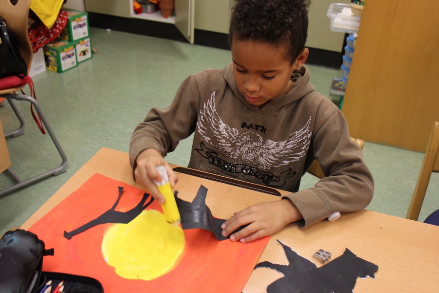 Hier können Sie die Kinder bei der Entstehung der Kunstwerke für die Vernissage beobachten.