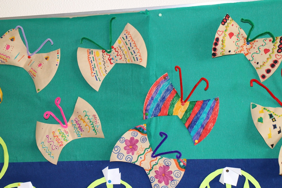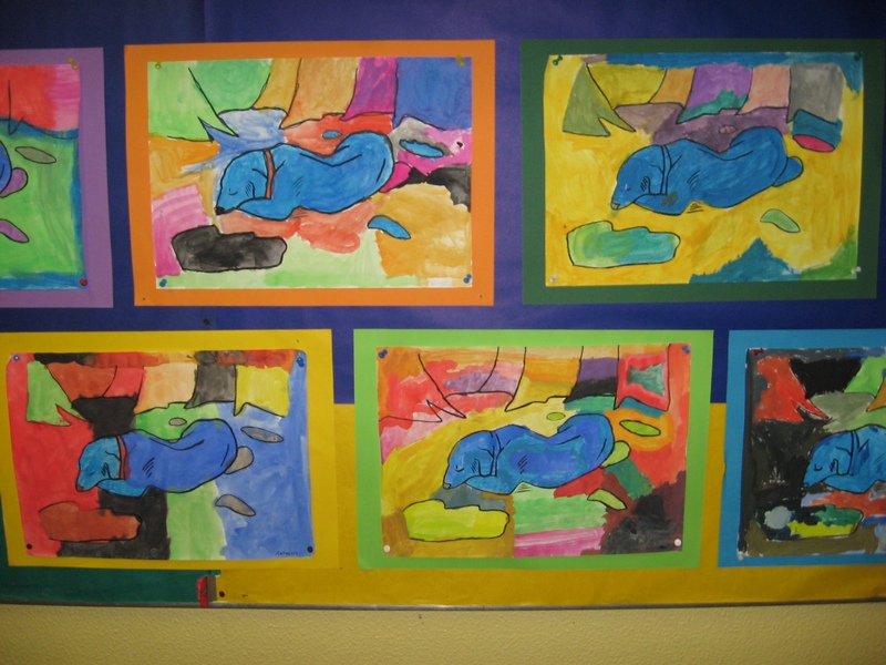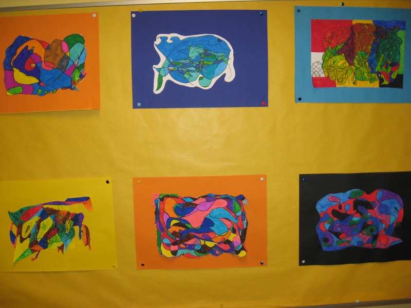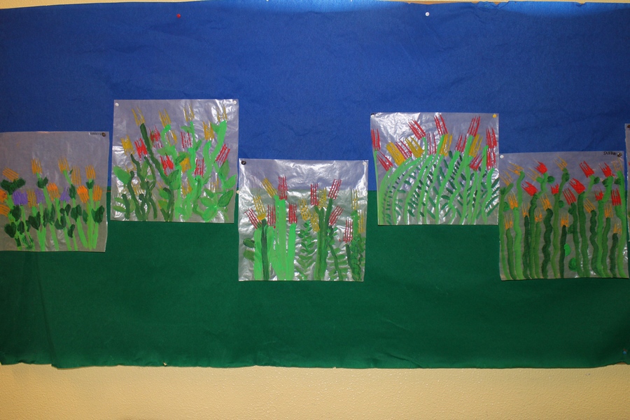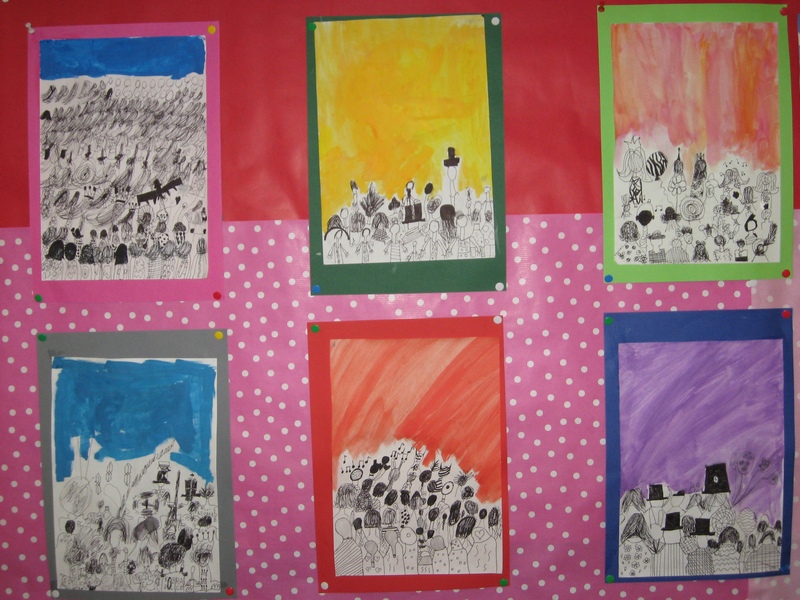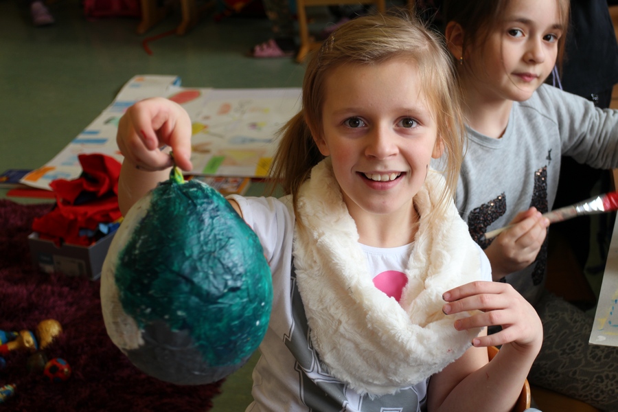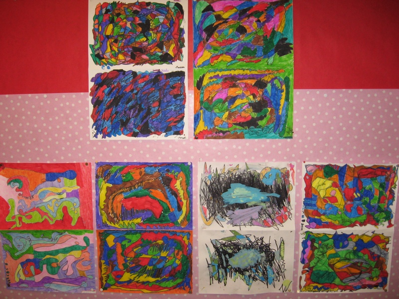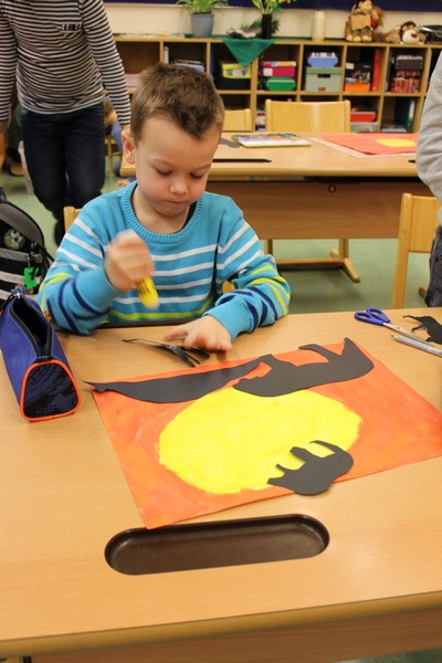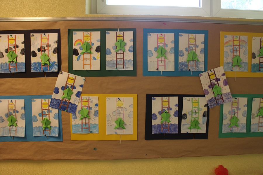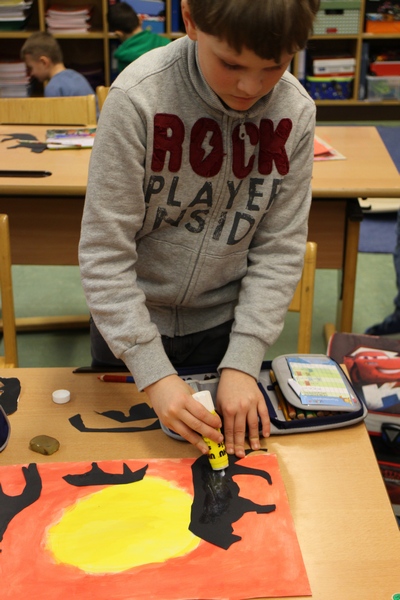 Hier können Sie die Kinder bei der Entstehung der Kunstwerke für die Vernissage beobachten.