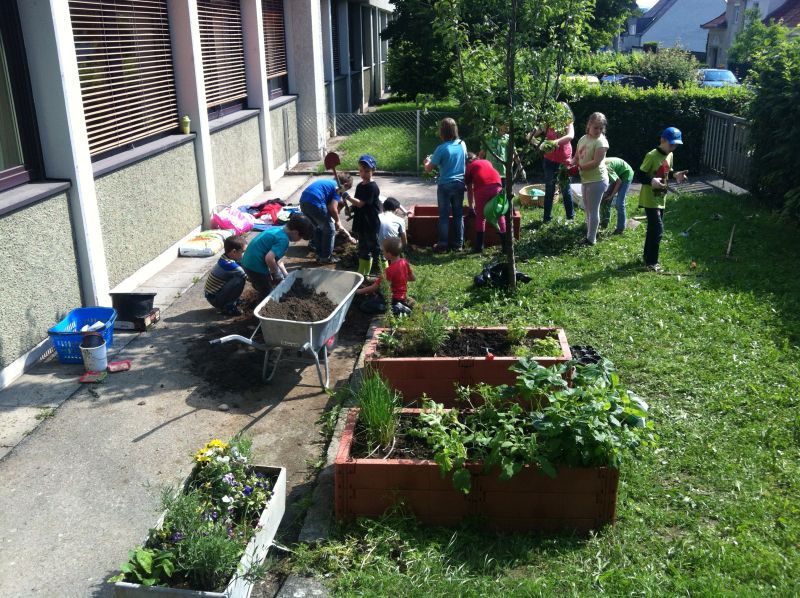 Bau von drei Hochbeeten im Rahmen der Ateliertage (Jahrgangsübergreifende Workshops)