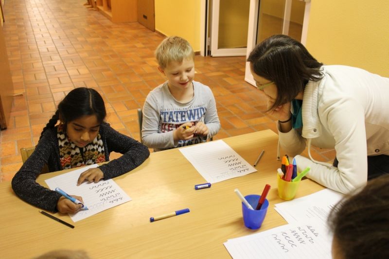 Wenn der Wunsch der Klasseneltern besteht, wird im Klassenforum beschlossen, dass der Kontakt zu einer Ergotherapeutin hergestellt wird. Diese arbeitet mit jedem Kind einzeln und gibt Rückmeldung, welche Füllfeder für Ihr Kind passt, mit welchem Schreibgerät Ihr Kind am besten umgehen kann.
