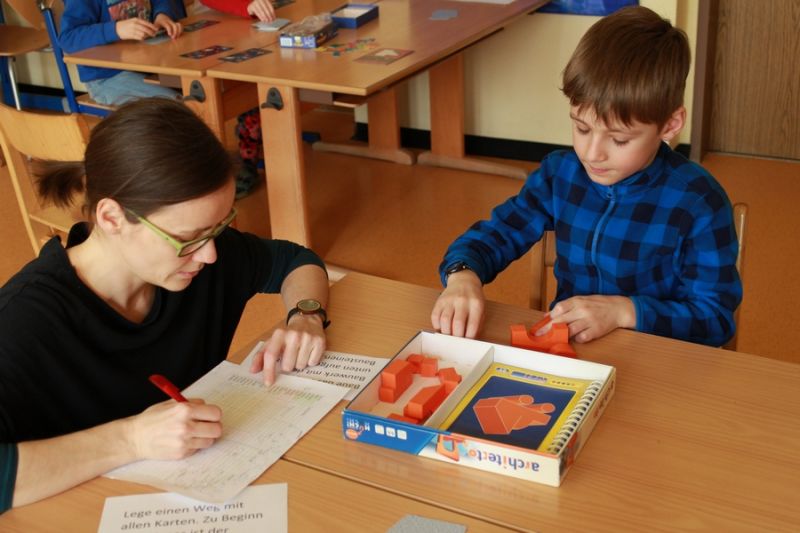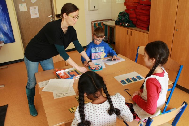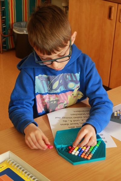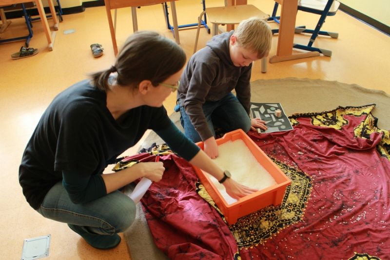 Körperwahrnehmung und Raumorientierung sind wichtige Voraussetzungen für den Erfolg in bestimmten Bereichen des Schulaulltags. In kleinen Gruppen arbeitet eine Ergotherapeutin mit den Kindern und gibt der Klassenlehrerin Tipps für gezielte Förderung.