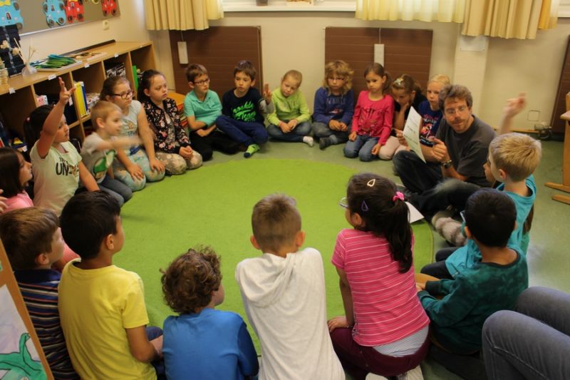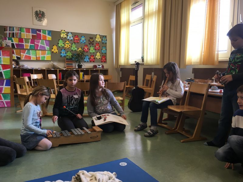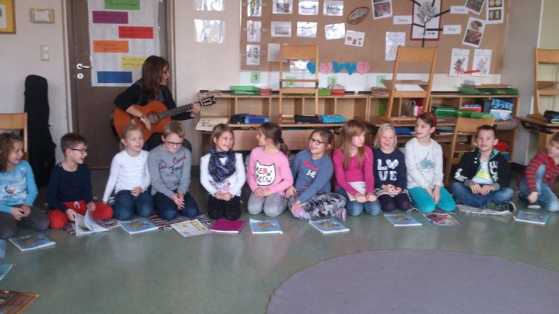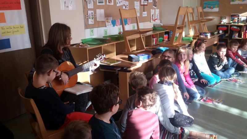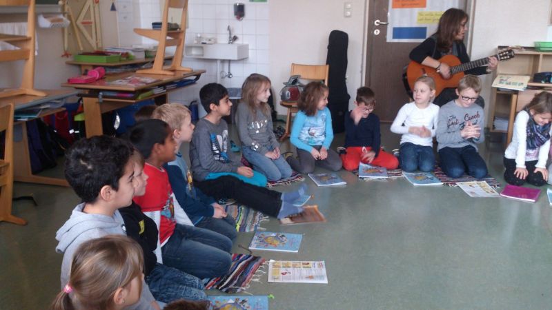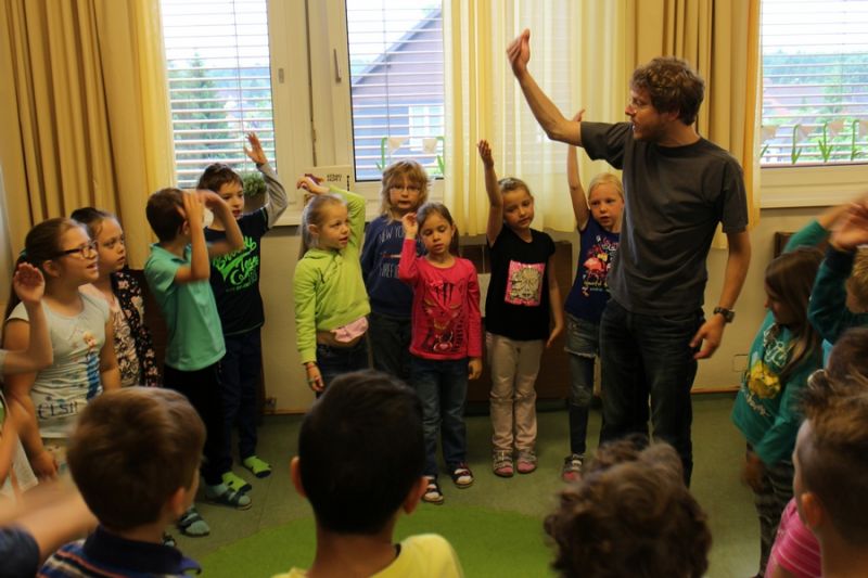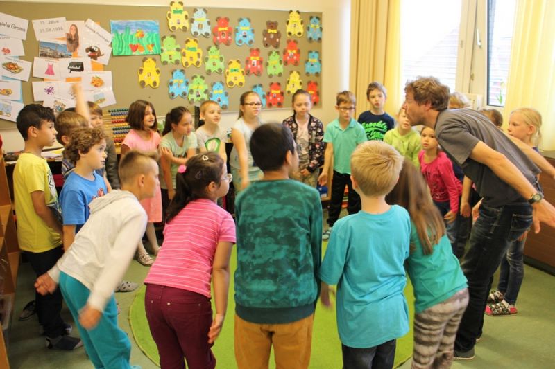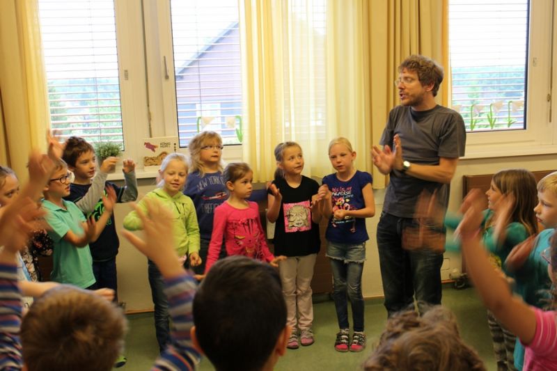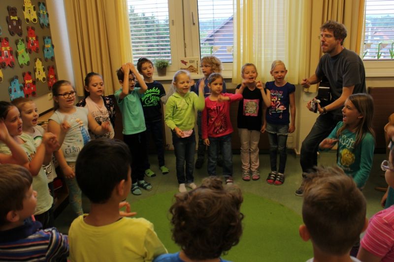 Schwungvoller Musikunterricht mit Herrn Auer von der Musikschule "Projekt Südwind" im Juni 2016