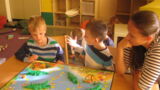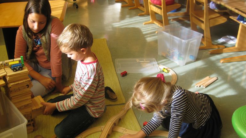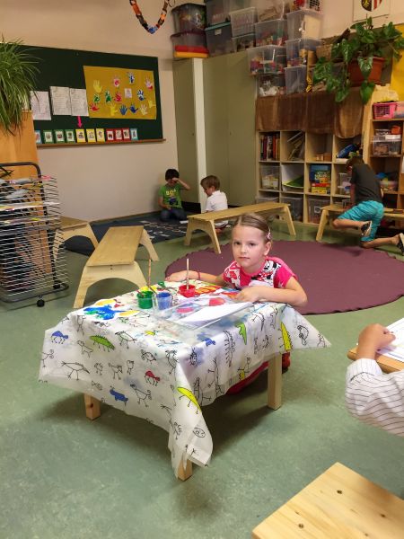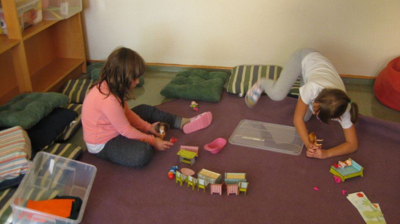 Die Freiarbeit ermöglicht den Kindern ein selbstgesteuertes, motivationales und soziales Lernen in einem vorbereiteten Rahmen. Die Kinder können gemeinsam "ein Haus" bauen und im Rollenspiel versinken, in der Schreibwerkstatt arbeiten, knifflige Legopläne ergründen, mit der Lehrerin im Zahlenbuch an den Würfeln arbeiten und vieles mehr ...