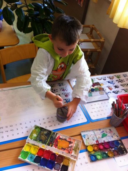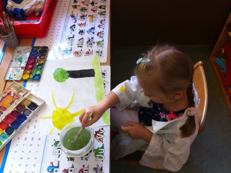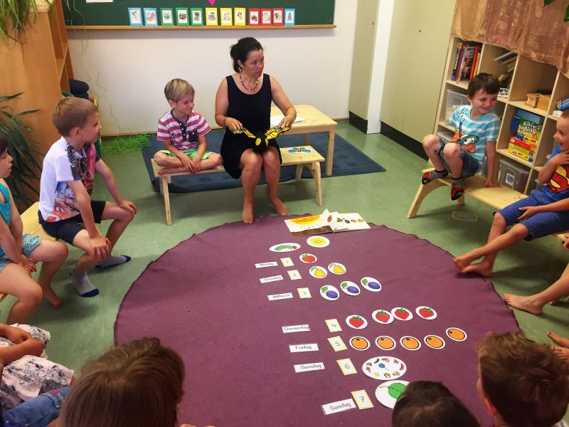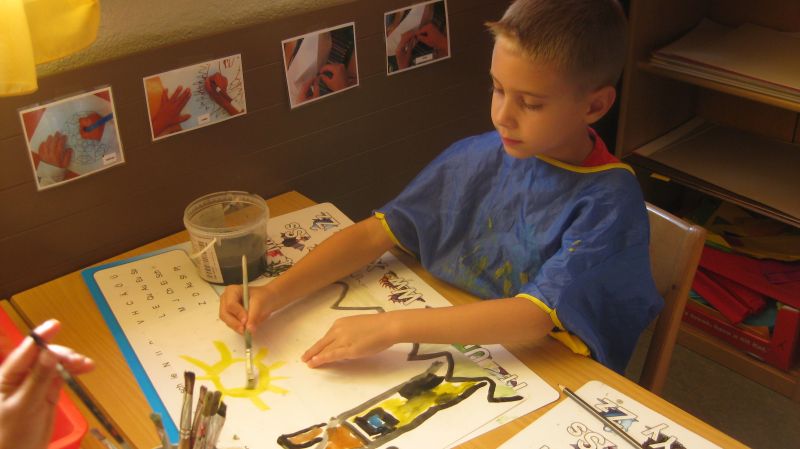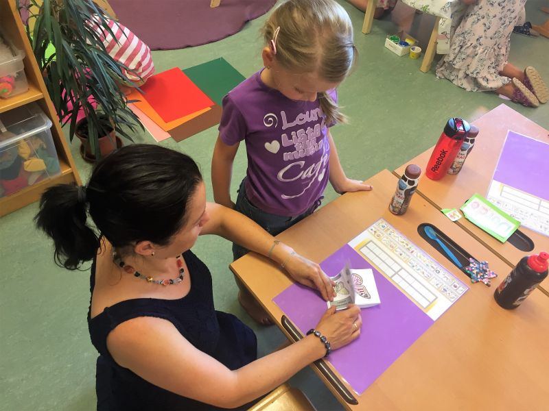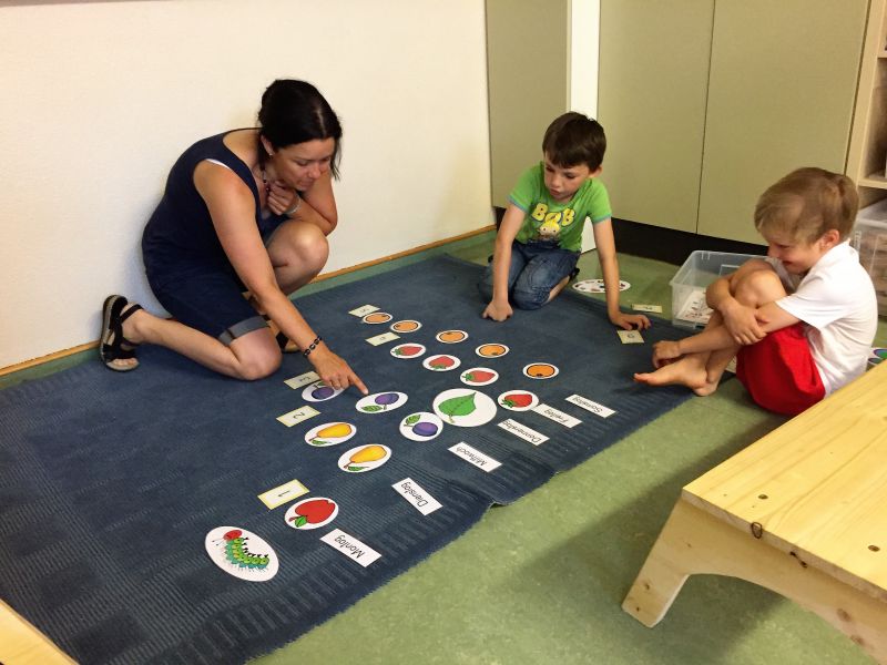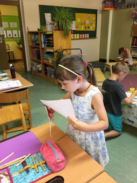 Die Kinder erfahren, dass es unterschiedliche Aufgaben zu erledigen gibt. Die zu erledigende Arbeit wird genau erklärt bzw. vorgezeigt und danach kann jedes Kind nach seinem eigenen Tempo arbeiten, die Reihenfolge selbst bestimmen und bei erledigten Dingen zur Lehrerin gehen, um sich einen Stempel abzuholen.