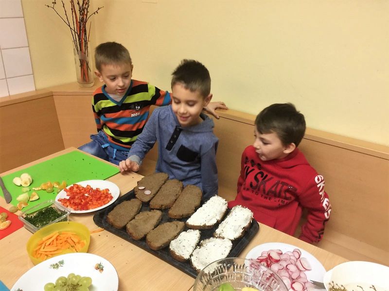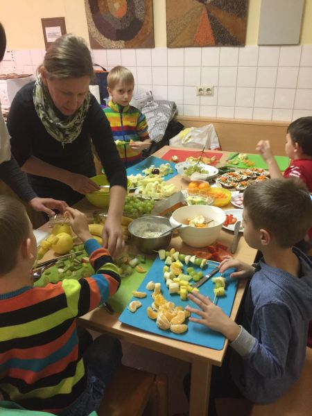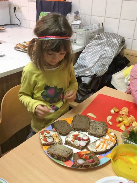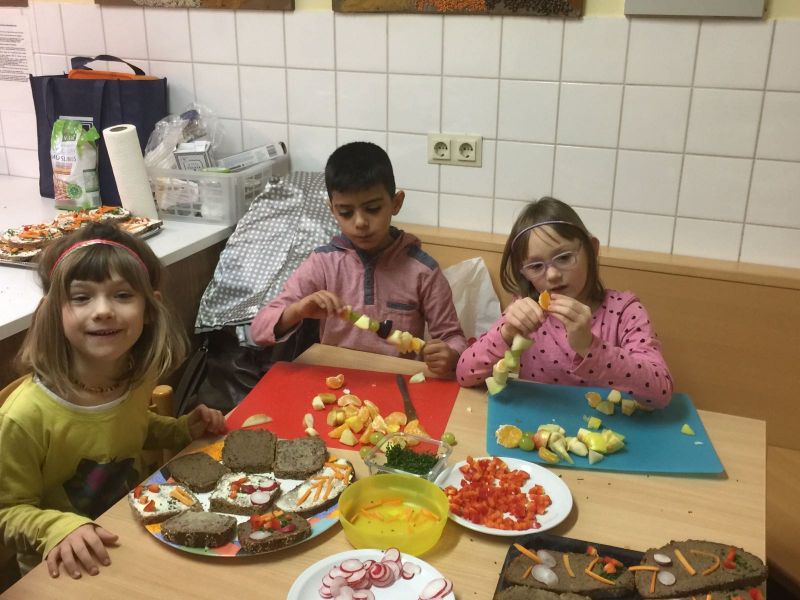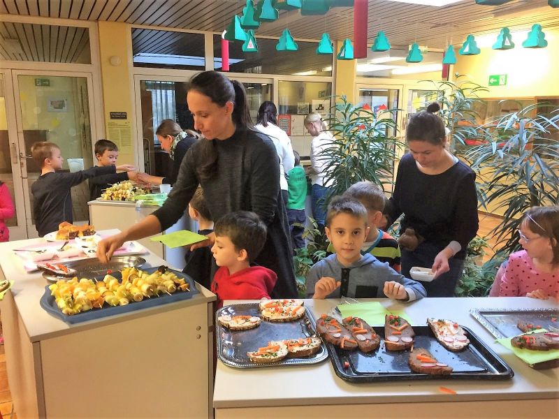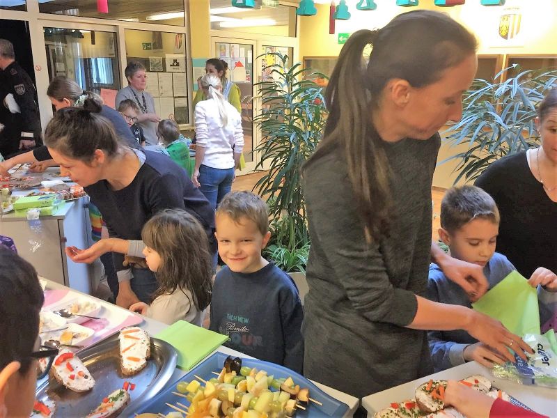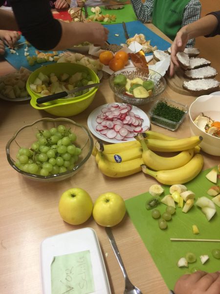 Gemeinsam mit den Eltern wurde zum ersten Mal die Gesunde Jause zubereitet.