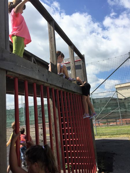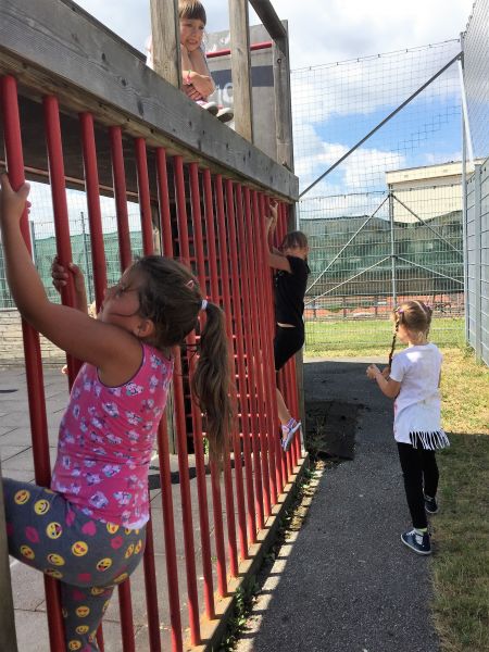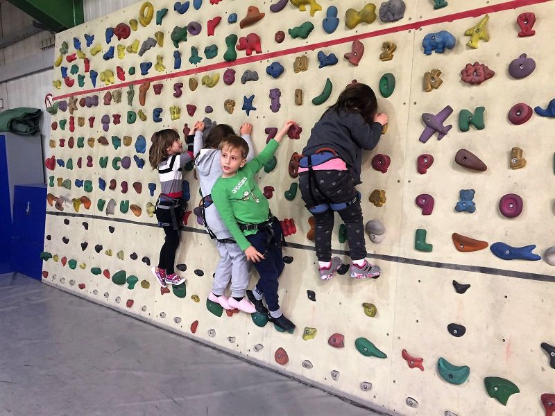 Gemeinsam mit unserem Klettertrainer haben die Kinder Erfahrungen an der Kletterwand gesammelt.