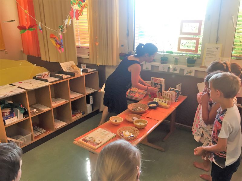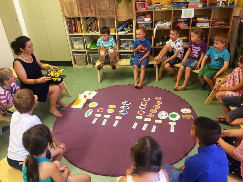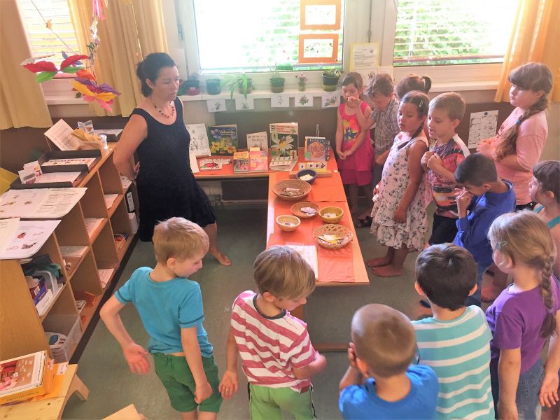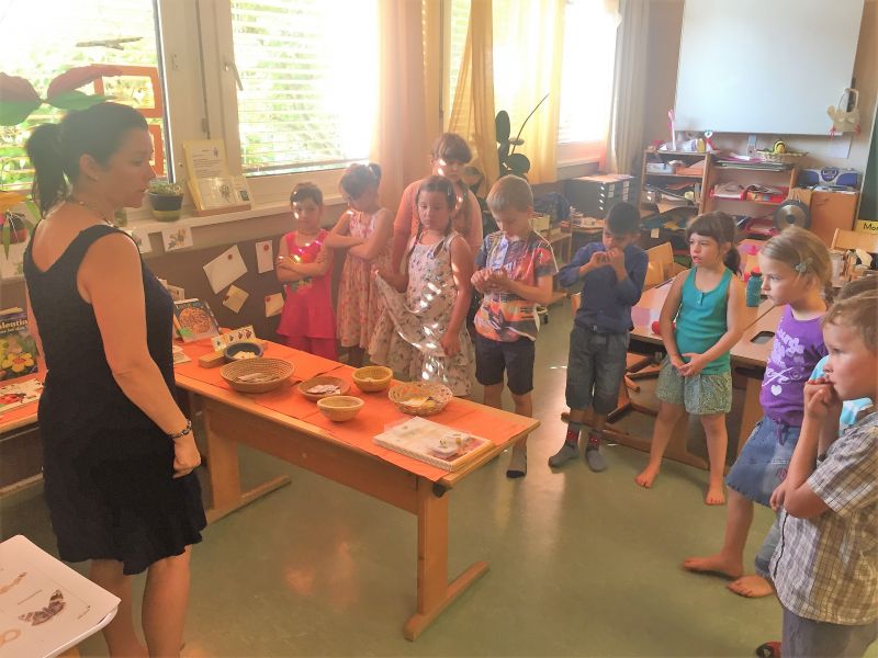 Die Kinder haben die Möglichkeit mit den vorbereiteten Materialien mehr über die Raupe und den Schmetterling, den Marienkäfer, die Ameise und den Regenwurm zu erfahren. Ebenso können sie sich bei den Blumen, wie z.B. die Schafgarbe, der Spitzwegerich, vertiefen. Es bleibt in der Lernwerkstatt auch Platz für eigene Ideen und Forschungen.