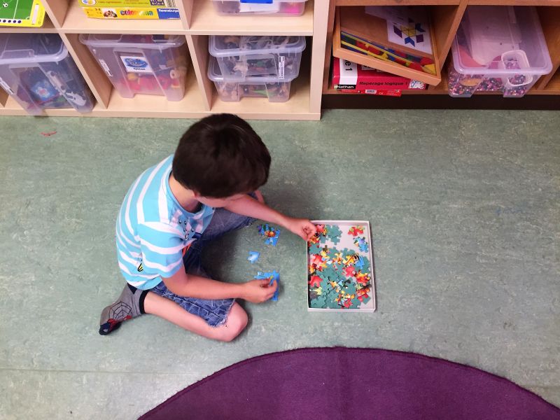 In den vorbereiteten Regalen stehen den Kindern ausgewählte Materialien zur Verfügung. Das Kind darf sich das Kind frei für ein Material und für einen geeigneten Platz entscheiden, arbeitet damit und räumt das Material am Ende wieder zurück. Wenn es die Zeit erlaubt, kann es sich etwas Neues holen.