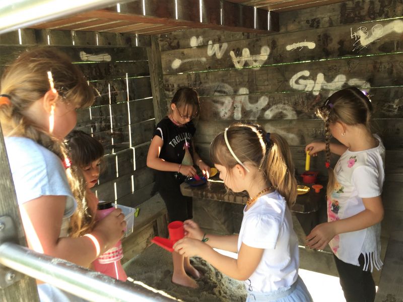 Im Wald oder auf dem Spielplatz gibt es viel zu erkunden und zu bauen.